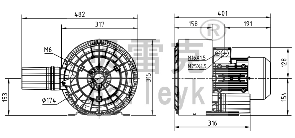 最大風量:150m3/h 最大正壓:420mbar 最大負壓:330mbar 防護等級:IP55 噪音:66db 重量:27Kg