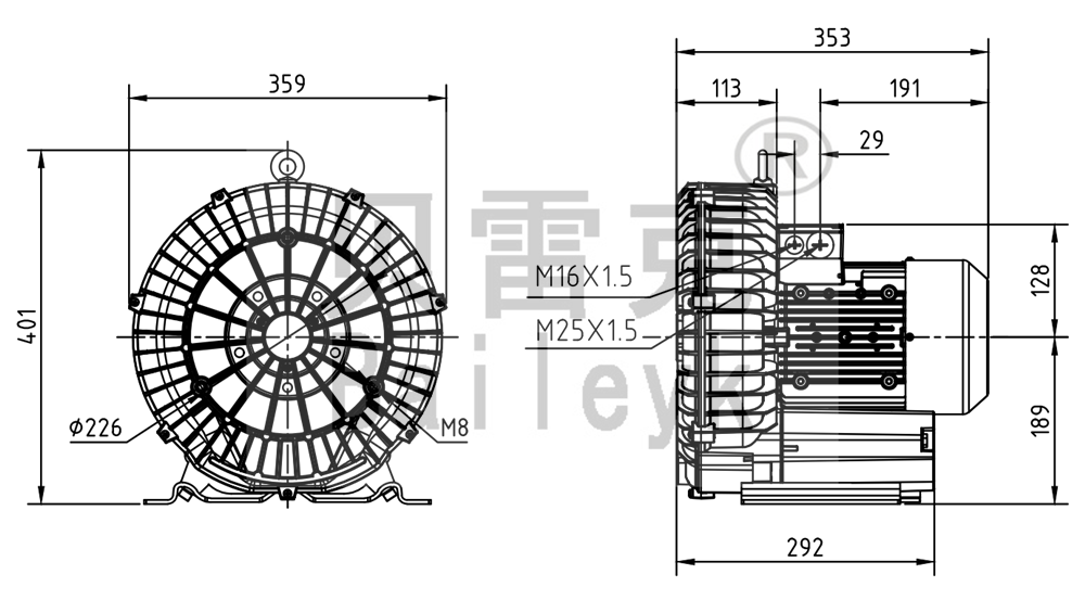 最大風(fēng)量:270m3/h 最大正壓:220mbar 最大負(fù)壓:235mbar 防護(hù)等級(jí):IP55 噪音:67db 重量:27Kg